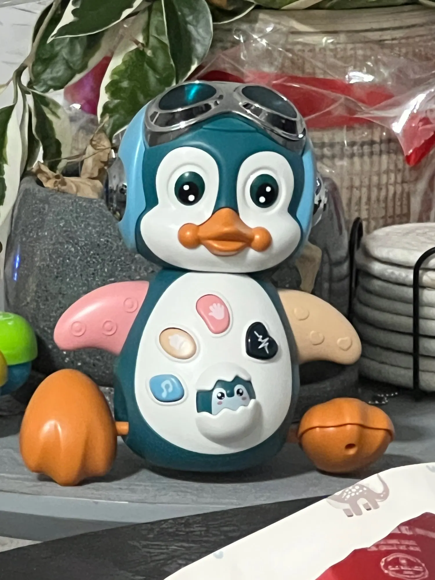 Le pingouin avance tout seul, danse en rythme, fait briller ses petites LED colorées et joue des musiques amusantes. Il stimule la motricité, la coordination, mais aussi la curiosité de bébé à le poursuivre.