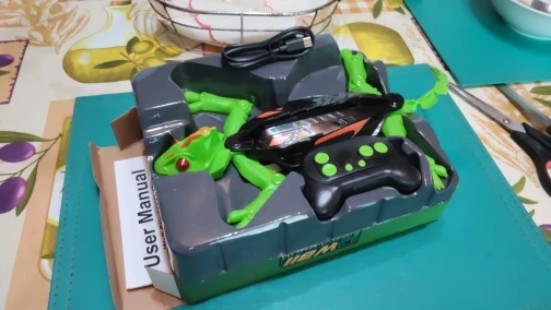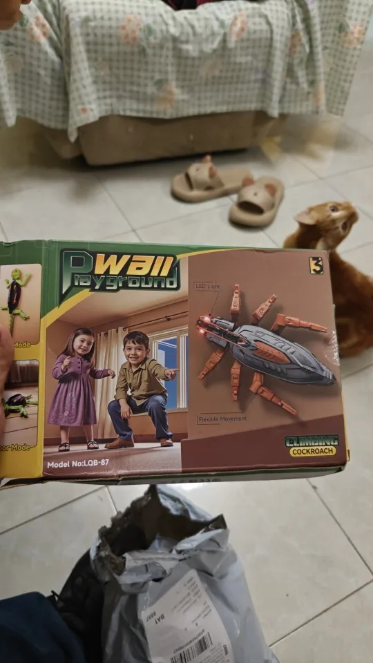 Le jouet est arrivé bien emballé et en excellent état, mais il est extrêmement bruyant (comme un aspirateur) et il faut changer la fonction pour qu'il fonctionne sur le sol et grimpe sur le mur.