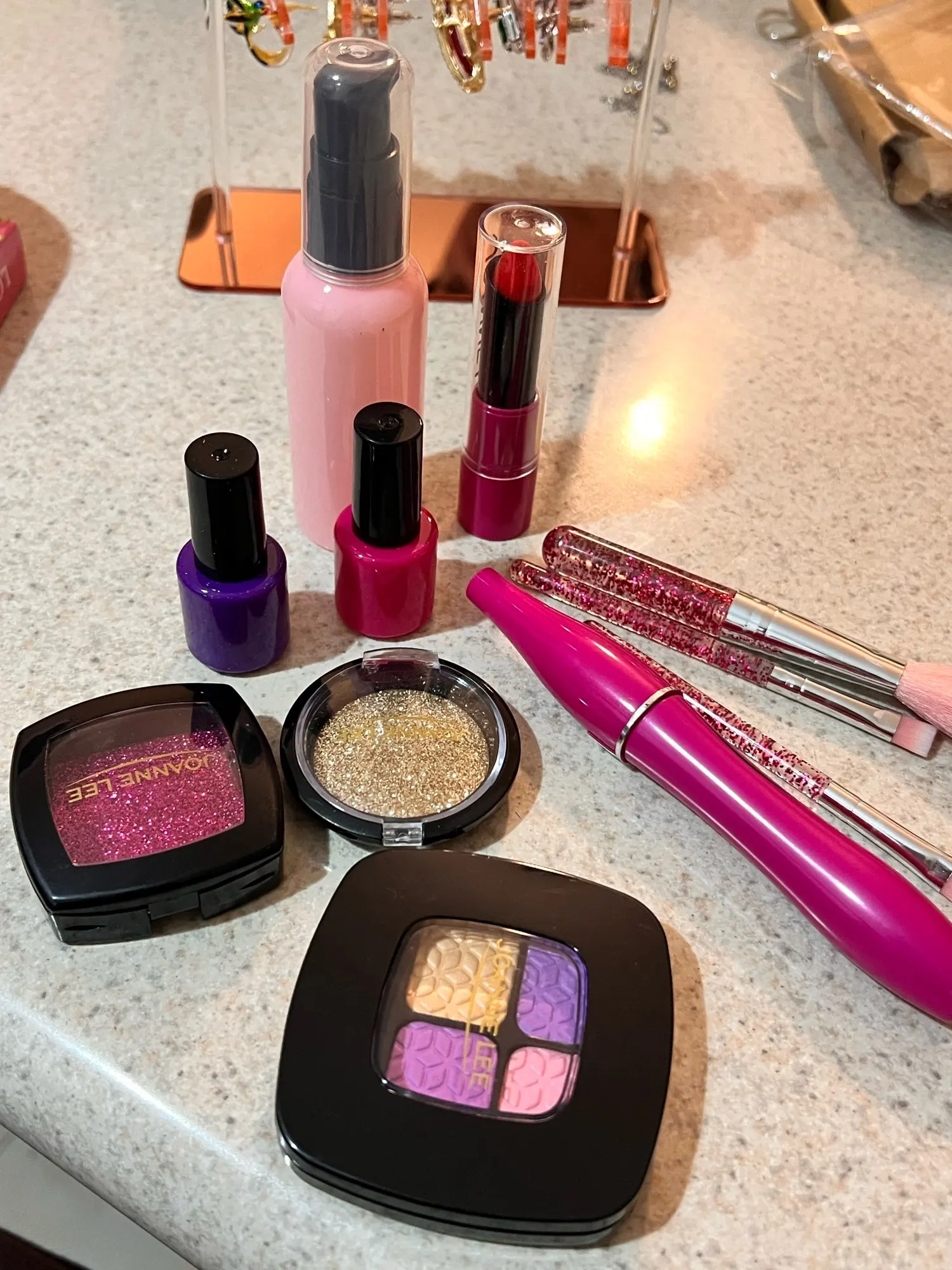 Waouh !!! Très haut niveau ! Tous les produits semblent si réels qu'on risque de se tromper ! Beaucoup d'articles amusants - fards à paupières, poudre, vernis à ongles, maquillage, mascara, et plus encore. Chaque produit est emballé individuellement. Arrivé relativement rapidement. Charmant !
